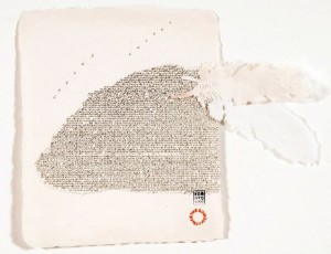 En esta ocasión E. del Rivero regresa a Madrid con una serie de trabajos sobre papel de ábaca fabricado a mano por Dieu Donné Papermill de Nueva York y que la artista ha titulado Flying Letters. En Flying Letters la pluma, frágil y humilde se alza como símbolo que escribe y teje el hilo conductor de la muestra. La contaminación del espacio privado y público, la traducción en lenguaje visual de la dificultad de comunicación y la poética de lo cotidiano son algunos de los temas a los que puede remitirnos la muestra. Como apunta John Yau en el catálogo de la exposición que se celebró en el centro La Consevera de Murcia, (27 de marzo – 27 mayo 2010) existe siempre en el trabajo de la artista “un deseo por desvelar conexiones”.