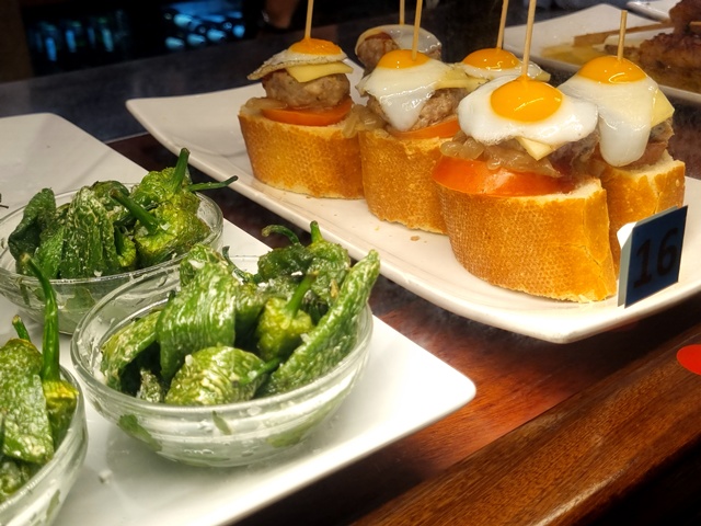 También confeccionar pintxos aparentemente sencillos y apetitosos, pero sin cuidar el punto puede estropear la experiencia y perjudicar su imagen. En un veterano bar de la Calle Mayor que ofrece casi un centenar de propuestas, pedí uno con buena pinta. Sobre una base de bacon, pimiento verde y unas patatas reposaba un trozo de morcilla con un techo de huevo de codorniz.