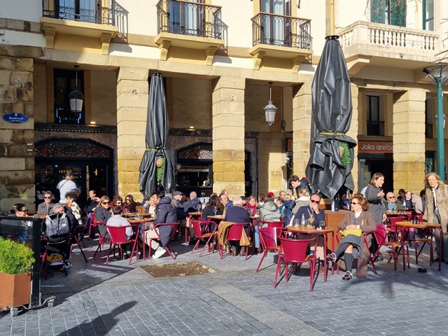 Parte del encanto no está solo en lo que se come, sino en cómo se come. Ir de pintxos es un ritual: se entra en un bar, se pide un pintxo y una bebida, se charla un rato y se sigue al siguiente local. No hay prisas. El paseo, la compañía y el ambiente son tan importantes como el sabor. El consumo de pintxos no responde únicamente a una costumbre gastronómica, sino también a una práctica social.