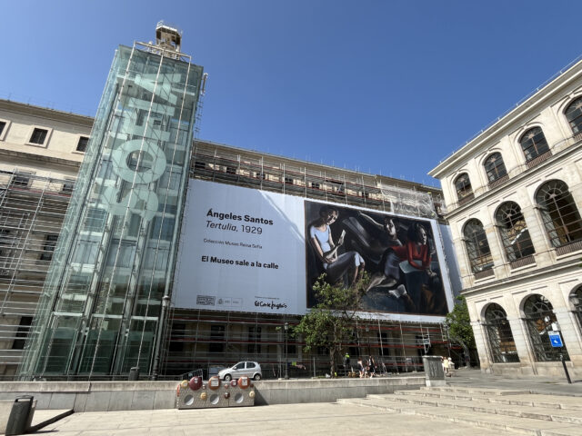 El Museo Reina Sofía ha iniciado las obras de restauración de las fachadas de los edificios Sabatini y Nouvel, ambos pertenecientes a su sede central. En una primera fase, se ha instalado un andamiaje en la fachada del edificio Sabatini, que será cubierto con grandes lonas impresas con obras emblemáticas de la Colección. Esta intervención forma parte del proyecto El Museo sale a la calle, desarrollado con la colaboración de El Corte Inglés.
