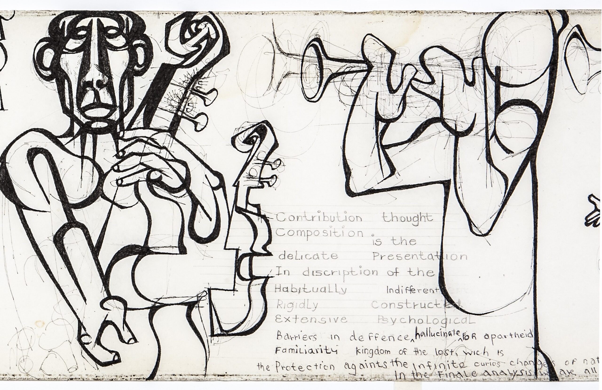 African Guernica, el dibujo monumental creado por el artista sudafricano Dumile Feni (Worcester, Sudáfrica, 1942 – Nueva York, 1991) en los años sesenta, se expone por primera vez fuera de Sudáfrica en diálogo con Guernica (1937) de Picasso. La obra de Dumile Feni está profundamente vinculada a la procedencia de su autor, ya que surge en el contexto de violencia estatal y opresión racial institucionalizada del apartheid. Contemplar ambas obras en espejo permite considerar sus referencias y recursos compartidos, similitudes y sinergias, y también las diferencias formales y figurales que son en gran medida consecuencia de su separación geográfica y temporal.