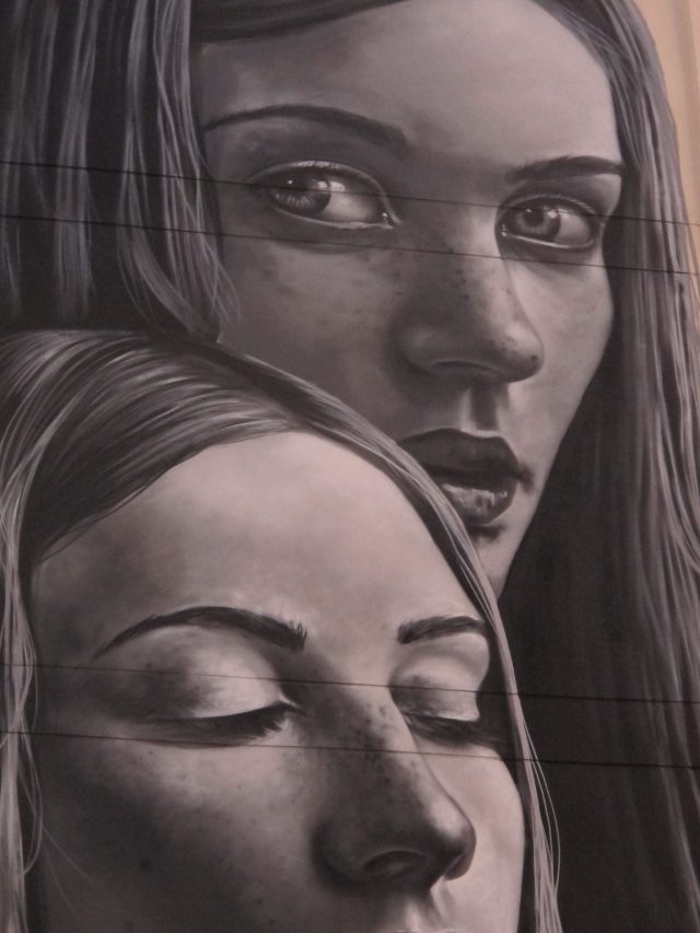 El Chorro Arts ha realizado la obra «Sin Título». La intención de esta intervención artística en el espacio urbano, es plasmar un diseño que proyecte paz y traslade al espectador. Su distintivo es elegir como protagonistas de sus obras a personas reales, vecinos y personas anónimas. En este caso ha elegido la imagen de una joven palentina disfrutando de ese corto momento del amanecer, cuando aún refresca y salen los primeros rayos que calientan la mañana. Ubicación de la fachada: C/ Terraza Barriada Isabel Simón 1.