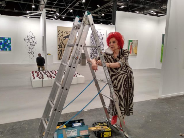 En ARCOmadrid 2021 las grandes piezas de arte se van colocando bajo la atenta mirada de los galeristas, allí está una de las coleccionistas más importantes de arte y pionera de ARCO, Juana de Aizpuru «Espero que los coleccionistas acudan a la feria. Es lo que más falta hace». Cada edición de ARCO vemos a esta gran mujer del mundo del arte dirigiendo la organización de su espacio para que cada obra que expone en su stand se muestre majestuosa.