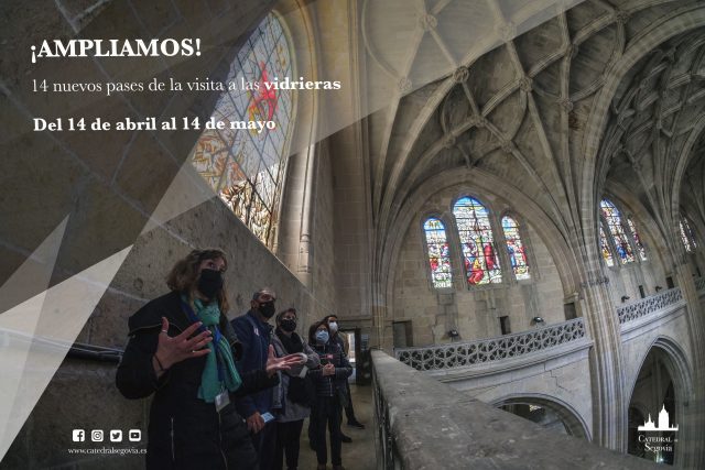 Ante la gran demanda creada y el interés de segovianos y visitantes, el Cabildo ha decidido ampliar este tour, esta vez en torno a una visita general sobre las vidrieras. Seguirá el mismo recorrido por los dos niveles de las balaustradas y, por lo tanto, contará con el gran atractivo de disfrutar del con-junto del templo y sus vidrieras desde una perspectiva única.