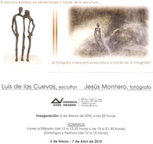El escultor Luis de las Cuevas y el fotógrafo Jesús Montero exponen conjuntamente en la galería Arte Imagen de A Coruña; el primero lo hace con sus estilizadas versiones en bronce de la figura humana y el segundo con reinterpretaciones fotográficas de las mismas, a las que pone luz y paisaje, ambas obras, pues, se complementan y la una sirve de inspiración y la otra de apoyo. El artista Luis de las Cuevas ya no se plantea la perfección como meta, pues ha aceptado que no existe una imagen única.