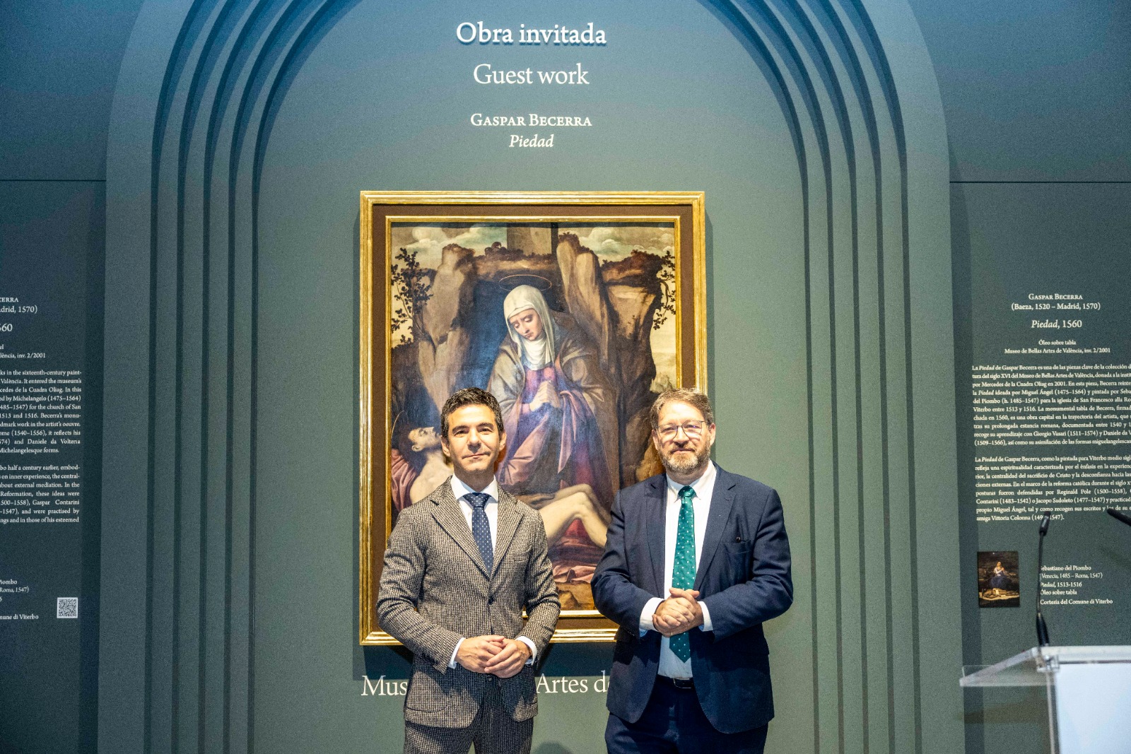 Por su parte, González Tornel ha destacado la relevancia de la obra, “clave de la segunda generación de las águilas del Renacimiento que acercaron el arte italiano a España”. Ha expresado además que es un honor que La Piedad pueda exhibirse temporalmente en la Galería, donde —según sus palabras— “Becerra conversa con Tiziano o Michel Coxcie, ofreciendo una viva imagen de la España de mediados del siglo XVI”.