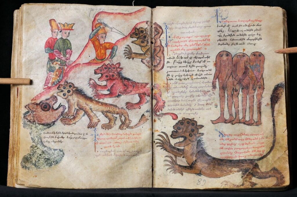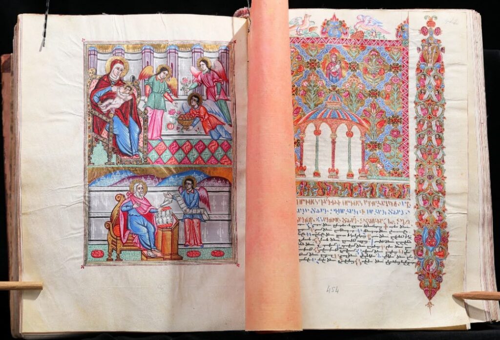 Los manuscritos armenios son reconocidos internacionalmente por sus pinturas en miniatura, una característica central de la cultura manuscrita armenia, que evolucionó a través de diversas escuelas regionales, cada una de ellas marcada por rasgos estilísticos y tradiciones iconográficas distintivas. La importancia de esta diversidad refleja la vasta geografía del patrimonio escrito armenio: estos manuscritos se produjeron en múltiples centros de aprendizaje y actividad artística dentro de la Armenia histórica y más allá, y hoy en día se conservan en bibliotecas y museos de todo el mundo, lo que demuestra tanto la amplitud geográfica e intelectual de la cultura armenia como su perdurable influencia global.