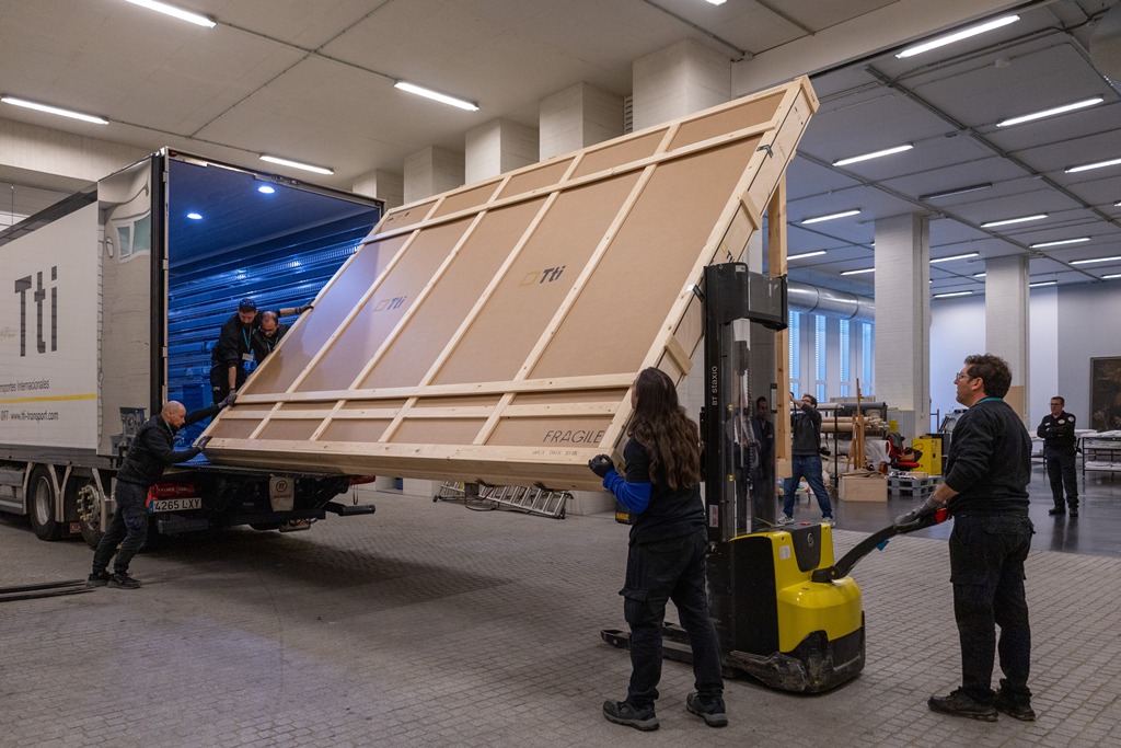 Patrimonio Nacional emprende la restauración de la obra maestra El Martirio de San Mauricio y la Legión Tebana, de El Greco. Esta semana se ha completado el traslado de la pintura desde las Salas Capitulares del Monasterio de San Lorenzo de El Escorial hasta la Galería de las Colecciones Reales, donde se realizará la intervención durante los próximos meses. Después, el cuadro se expondrá allí temporalmente antes de regresar al Real Monasterio.