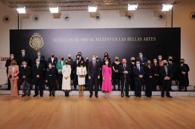 En la ceremonia se ha hecho entrega de las Medallas al Mérito en las Bellas Artes, en su categoría de Oro, tal como acordó el Consejo de Ministros el 29 de diciembre de 2020, a propuesta del entonces ministro de Cultura y Deporte, José Manuel Rodríguez Uribes, a: